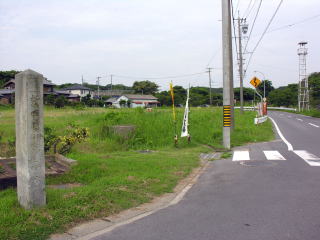 暫らく進むと石柱(9:49)![]() 写真を撮って先に進む かなり進んで、どうも様子が可笑しいと 石柱の位置まで引き返し、路地へ |